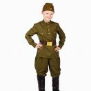 Форма военная ВОВ. Прекрасно подойдёт для военно-патриотических праздников, 23-го февраля, 9-го мая, сценических и театральных постановок. Гимнастёрка прямого силуэта, с длинным рукавом, воротник-стойка. Пилотка складная старого военного образца. Форменные брюки-галифе, расширенные вверху и зауженные к низу.