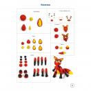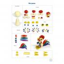 Предлагаемый наглядно-дидактический комплект включает в себя 8 красочно оформленных листов, позволяющих ребенку в совместной деятельности со взрослым или самостоятельной игре осуществить в определенной технологической последовательности, действуя по алгоритму и применяя приемы лепки, выполнение 8 моделей из пластилина (котик, лисичка, петух, тигренок, львенок и др.).
