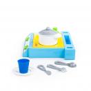 Маленький настольный набор, совмещающий в себе плиту, мойку, а также набор посуды. В комплектацию входят: